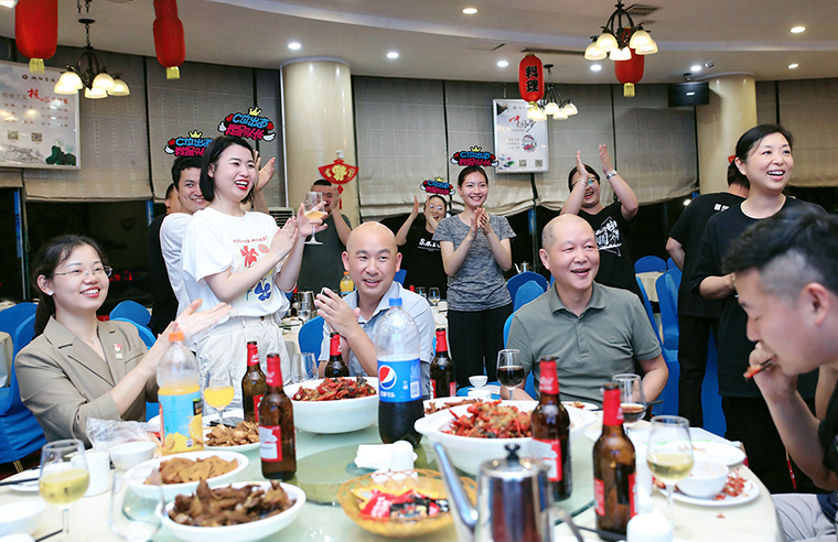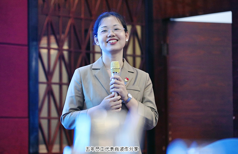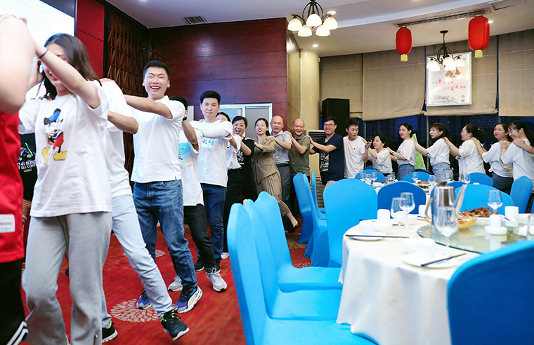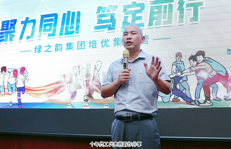 晚上的分享联欢会也是热闹非凡。集团公司的五年、十年员工代表作工作经验分享。《刘海砍樵》情景剧、《相信自己》合唱、《绿韵青年》诗朗诵……各小组精心准备的团队节目掀起了晚会一次次高潮,现场不断响起热烈的掌声和欢呼,成为一片欢乐的海洋。