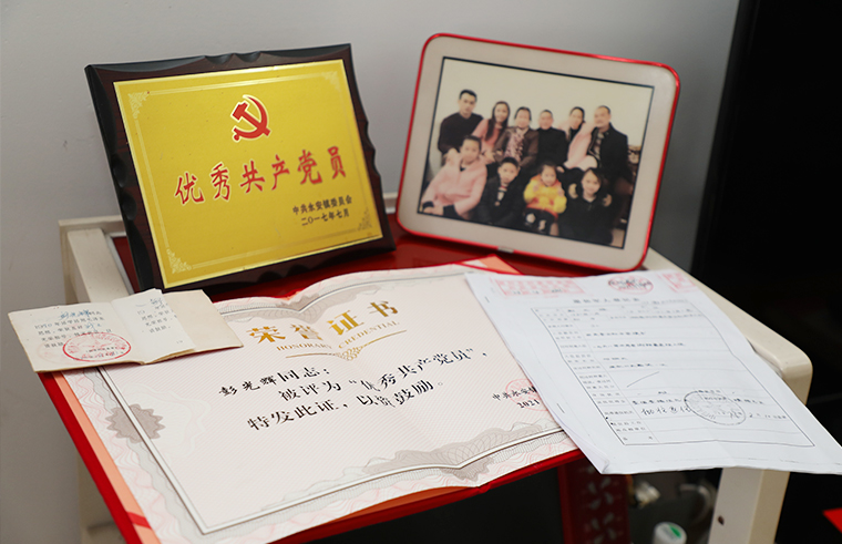 1997年彭光辉终于加入中国共产党,成为一名共产党员。他时刻以共产党员的高标准、高要求警醒自己,始终践行党的初心使命,积极参加村里各项公益事业,扎根农村,为建设美丽乡村建言献策、奉献自我力量。2017年、2021年他获得镇“优秀共产党员”荣誉称号。“一朝成为共产党员,一生都应该为党做事。”这是彭光辉一直挂在嘴边的话,也是他忠诚为党、践行一生的诺言。