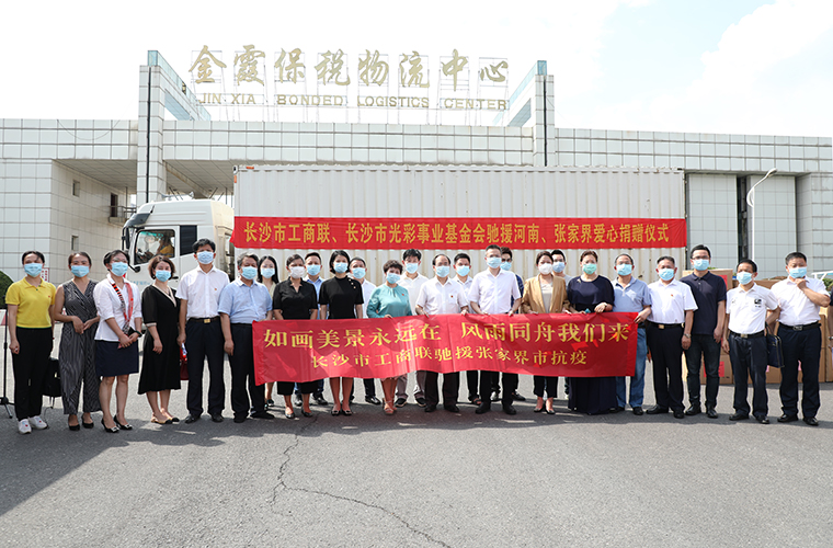 2021年8月6日,长沙市工商业联合会、长沙市光彩事业基金会举行驰援河南、张家界爱心捐赠活动。中共长沙市委常委、统战部部长谭小平,长沙市工商联主席康镇麟,中共长沙市委统战部副部长、市工商联党组书记何惠风等领导出席捐赠仪式。长沙市工商联副会长、安博官网董事总裁、湖南省绿之韵公益基金会理事长劳嘉参加捐赠活动。