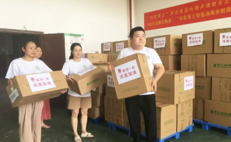 面对河南重大暴雨灾情,绿之韵低碳邦家博士河北区总代理卢清艳第一时间联系品牌官方,调动各方资源,向北京博爱妇女发展慈善基金会捐赠了一批应急物资支援河南,包括1000台绿之韵低碳邦家博士智能消毒水制造机、2000支牙膏、1000条小方巾、1000件日用旅行套装以及洗衣液、洗碗液等应急生活物资,为受灾地区提供力所能及的帮助。