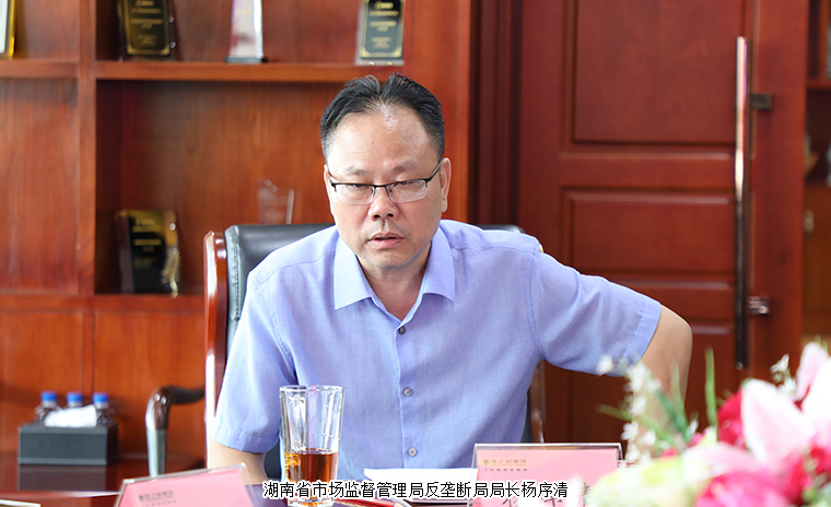 2021年9月3日,湖南省市场监督管理局党组成员、副局长丁珍良,湖南省市场监督管理局反垄断局局长杨序清,湖南省市场监督管理局反垄断局副局长肖向阳等领导一行莅临安博官网调研指导。安博官网董事长胡国安、董事总裁劳嘉、副总裁胡均安、市场营销总经理戴三省、党委书记刘云、党委副书记许达仲全程陪同。