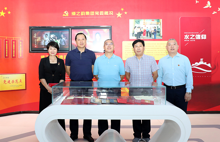调研组一行先后参观了绿之韵国际会议中心多功能形象展示厅、党建文化教育基地。参观期间,胡国安董事长就企业基本情况、生产经营、市场布局、产品研发、非公党建和公益慈善等方面的工作情况向调研组一行作了汇报。自创立以来,绿之韵始终秉持“以产品为导向”的发展理念,以产学研结合为模式先后与南京大学、湖南中医药研究院、湖南中医药大学、湖南农业大学等科研院所、高等院校达成战略合作,打造了一支以权威专家教授为核心的产品科研队伍。公司连续多年获得“湖南省守合同重信用企业”称号;2016年6月,被国家市场监督管理总局评为“全国守合同重信用企业”。截止目前,公司拥有注册商标近100个、专利技术近50项,并于2019年4月通过知识产权贯标认证。2018年新申请专利20个,其中发明专利10个,占比50%。连续两年获得《知识产权战略实施专项》立项,获得了省、市、园区知识产权局对公司知识产权建设的一致认可。目前,绿之韵正在加快筹建公司博士后科研工作站,进一步提升企业创新科研能力和核心竞争力,实现高质量发展。调研组一行对绿之韵始终坚持企业稳健发展、坚持党建引领、积极承担社会公益责任等方面做出的努力,予以了高度肯定。