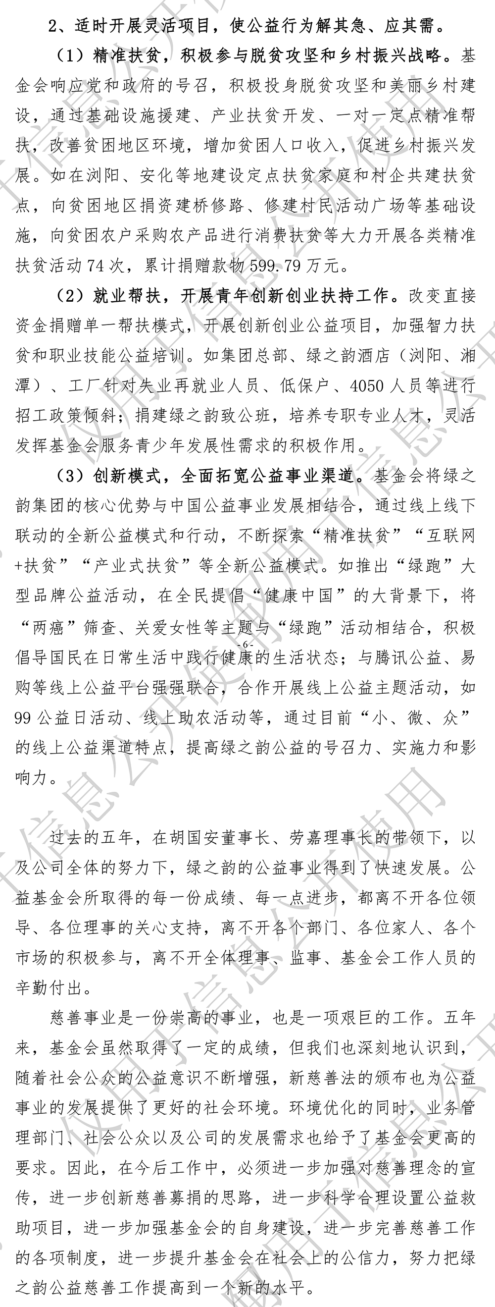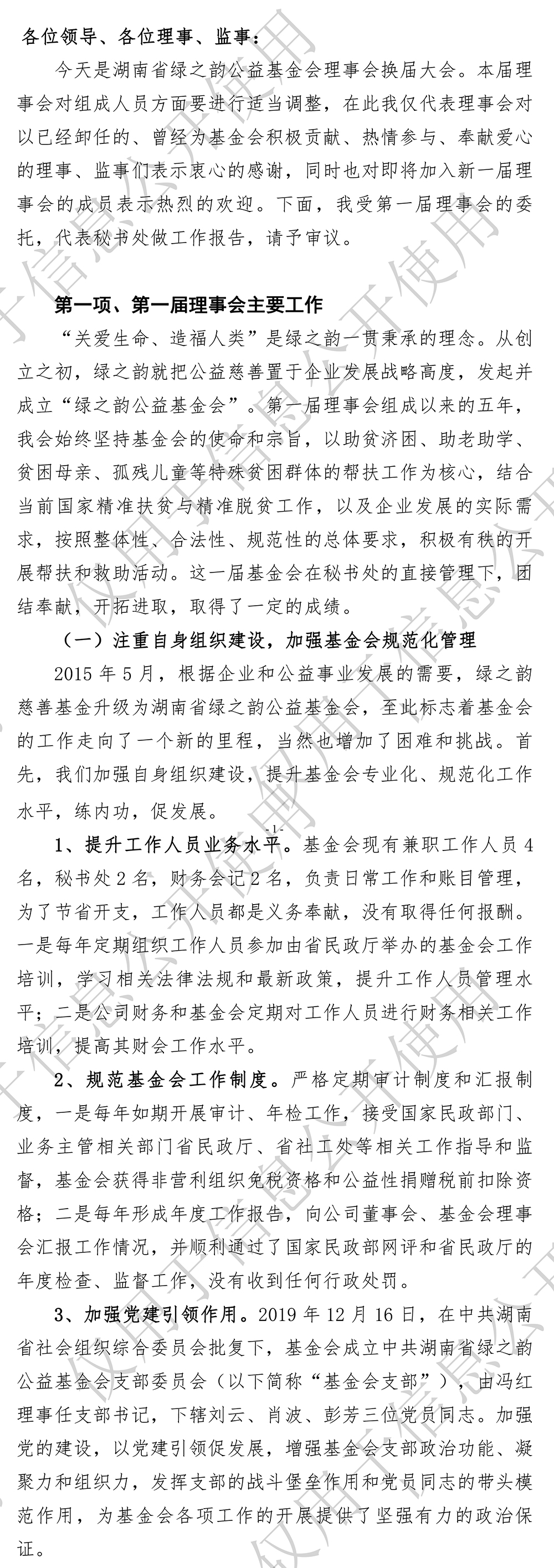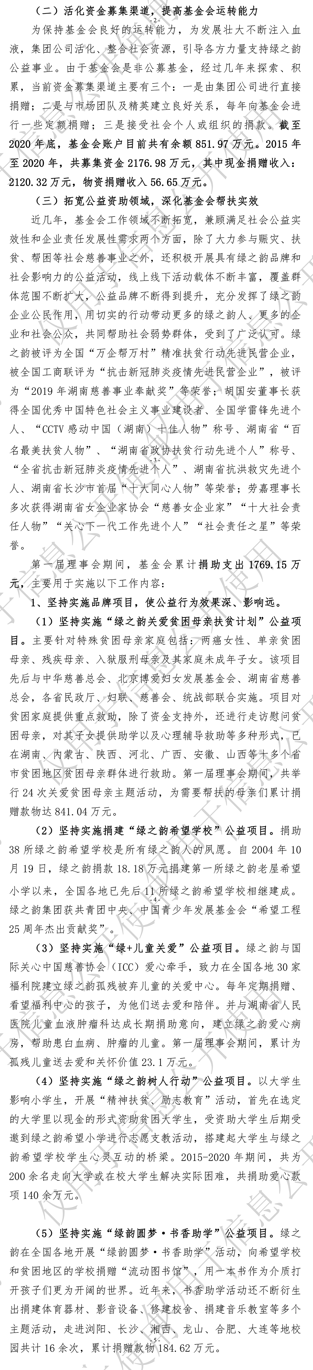 湖南省绿之韵公益基金会第一届理事会工作报告(2015-2020年)