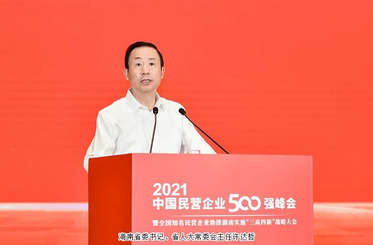 9月25日,由全国工商联、湖南省人民政府共同主办的2021中国民营企业500强峰会暨全国知名民营企业助推湖南实施“三高四新”战略大会在长沙举行。全国政协副主席、全国工商联主席高云龙,中共湖南省委书记、省人大常委会主任许达哲出席并分别致辞。中央统战部副部长、全国工商联党组书记、常务副主席徐乐江,省委副书记、省长毛伟明,重庆市原市长黄奇帆出席。工信部副部长徐晓兰,国家乡村振兴局副局长洪天云,中国工商银行副行长张伟武,中国建设银行副行长王浩分别致辞。全国工商联党组副书记、副主席樊友山主持。全国政协副秘书长、全国工商联副主席黄荣,安徽省副省长王翠凤,贵州省政协副主席李汉宇,省领导黄兰香、谢建辉、张剑飞、吴桂英、张健等出席。中国光彩事业促进会理事、湖南省工商联(总商会)副会长、安博官网董事长胡国安受邀参会。