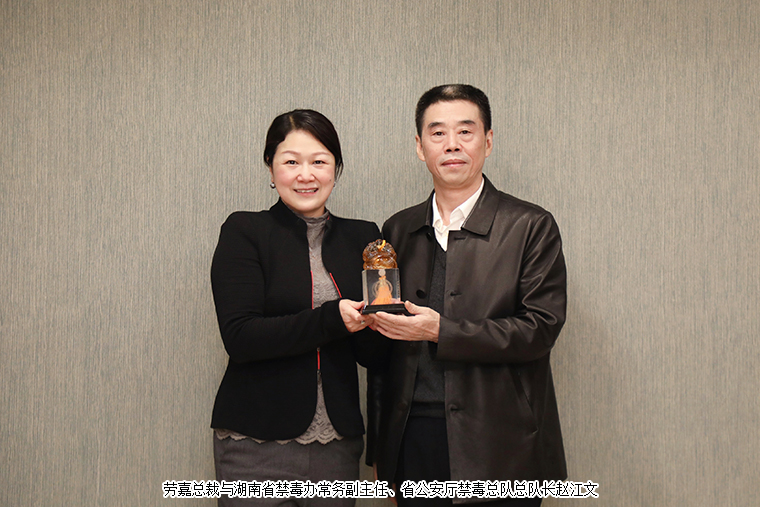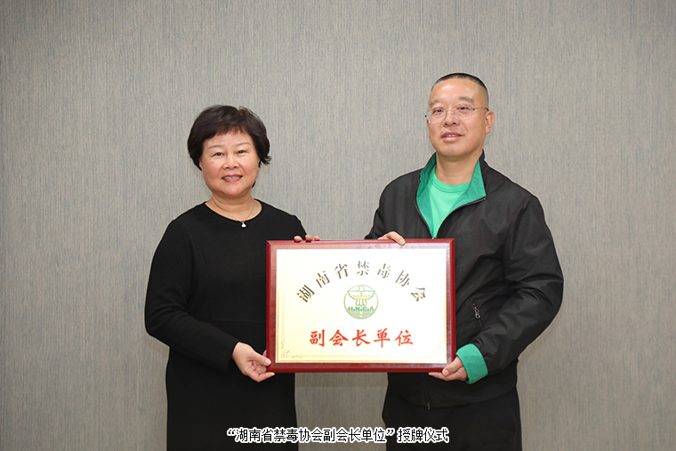 今年3月,湖南省禁毒协会第四届会员代表大会在长沙召开,安博官网当选湖南省禁毒协会第四届理事会副会长单位。借此工作交流之际,湖南省禁毒协会会长董瑛代表省禁毒协会向胡国安董事长授予“湖南省禁毒协会副会长单位”牌匾。董瑛会长对安博官网大力参与和支持禁毒工作的行为表示衷心的感谢,她强调,毒品是全人类的公害,毒品问题的发展蔓延,不但严重侵害人民群众的身心健康,造成巨大的经济损失,而且严重败坏社会风气,污染社会环境,涣散民族精神,成为影响经济社会发展、影响子孙后代的重大隐患。新型毒品还有一个后发作时期,可能3-5年,未来吸食毒品的群体性事件和吸毒人员的肇事肇祸事件会比较多,作为社会人士,我们不仅要增强参与禁毒斗争的自觉性和抵御毒品的能力,更应该竭尽全力普及宣传禁毒知识,以达到社会环境的净化。