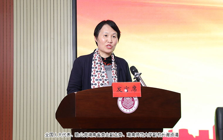 活动最后,全国人大代表、致公党湖南省委会副主委、湖南师范大学副校长谢资清讲话。她指出,湖南“一家一”助学就业·同心温暖工程是省委统战部、省教育厅牵头,湖南中华职教社和湖南省温暖工程基金会组织,是全省统一战线各组成单位,包括各民主党派、无党派人士等社会各界广泛参与的一个职教扶贫项目。多年来,致公党湖南省委会秉承“致力为公”立党宗旨,贯彻习近平总书记精准扶贫思想,落实省委省政府脱贫攻坚战略部署,向社会各界广泛宣传致公助学,积极争取党内外、省内外、海内外各方力量的支持,用善举传递党和政府对贫困家庭学生的关怀,用爱心点燃受助学子对美好生活的希望。她希望在座的每一个同学都能珍惜来之不易的学习机会,树立坚定的理想信念,培养高尚的品格,掌握精湛的技术,具备熟练的技能,树立良好的道德,锻造强壮的体魄,培养坚韧的意志,以优异的成绩来回报父母亲人、海内外爱心人士和学校的培养与关爱,为国家、为社会、为家庭担负责任,做出贡献。
