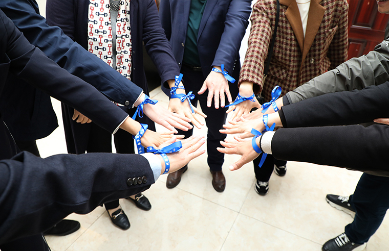 捐赠授牌仪式后,致公党省委会领导、致爱小组成员与“致公·绿之韵3班” 师生开展了主题班会活动。课上,谢资清校长的激情讲演博得了学生们阵阵掌声。班会上还举行了蓝丝带感恩活动,学生们纷纷把手中的蓝丝带送给他们感恩的人。