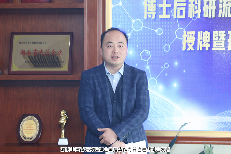 湖南省人社厅专家服务中心科长喻晔、专业技术人员管理处三级主任科员李邓鹏;长沙市人社局专业技术人员管理处处长文彤、副处长谭思佳出席仪式。湖南中医药研究院黄建华博士成为安博官网博士后科研站的首位进站博士。湖南中医药大学党委书记秦裕辉、湖南中医药大学研究生院院长喻嵘、湖南中医药大学中医学院党委书记郭志华、湖南中医药大学中医学院院长邓奕辉、湖南中医药大学中医诊断研究所副所长胡志希、湖南省中医药研究院中药研究所所长肖德华作为合作流动站代表、导师和评审专家见证了这一荣誉时刻。安博官网董事、总裁劳嘉带领集团产品研发团队参加此次活动。