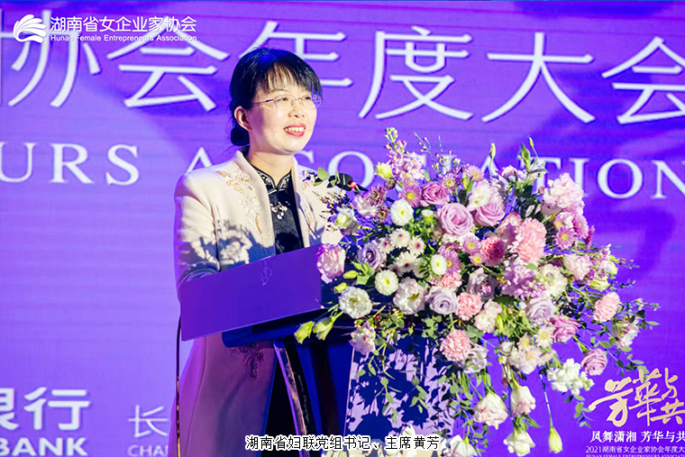 活动分为荟芳华、共芳华、品芳华、绽芳华四个篇章,在全年回顾宣传片中拉开序幕。张海霞会长作年度工作报告,吴建平书记作党总支工作报告,汪海燕副会长作财务工作报告,汪萍监事长作监事会报告。湖南省妇联党组书记、主席黄芳在讲话时表示,2021年省女企协在海霞会长的带领下,主动融入全省经济发展的大潮,大家齐心协力搭建交流平台,尤其是今年建党百年组织的巾帼心向党活动赢得了社会的认可。面对疫情,会长企业带头,各级会员积极响应,累计捐款捐物合计3000多万,彰显了湖南企业家们的大爱情怀。她希望协会能不断提高向心力和凝聚力,使省女企业家协会发展壮大,成为助推湖南高质量发展的一支红色娘子军。