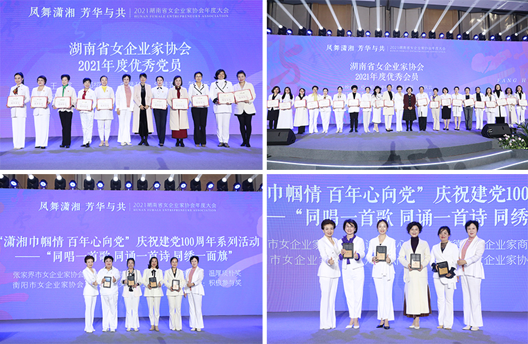 2021年,在第六届理事会的领导下,在广大会员的大力支持和积极配合下,协会认真践行服务宗旨,引领潇湘女企业家听党话跟党走,为经济社会发展贡献巾帼力量。在建党100周年来临之际,协会组织开展了一系列主题鲜明、参与广泛的协会活动,展示了广大潇湘女企业家积极向上的良好风貌。其中,涌现出了一批履职尽责、积极主动、无私奉献的优秀代表。大会集中颁发了“优秀党员”“优秀会员”“优秀团体会员”“优秀协会工作者”等奖项。劳嘉总裁被授予“潇湘巾帼情 百年心向党”庆祝建党100周年系列活动——红色之旅“兢兢业业”奖。