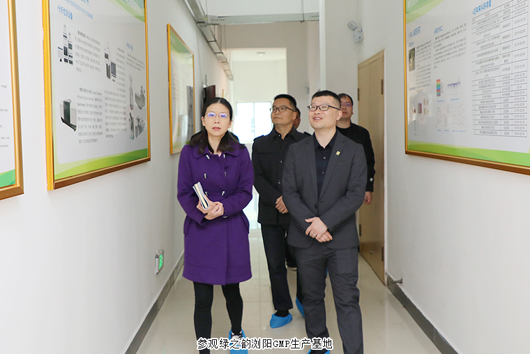 期间,调研组一行还前往绿之韵浏阳GMP生产基地,深入生产车间实地考察。绿之韵保健品GMP生产基地暨现代化物流中心引进、安装目前世界上最先进的片剂、粉剂生产设备和全自动包装线。在工作人员的引导下,考察组一行参观了生产基地内胶囊、片剂、固体饮料、袋泡茶等生产线,并详细了解了企业技术中心及研发检验设备。