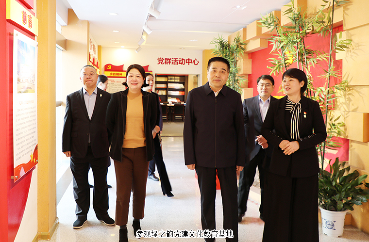在党建文化教育基地,湖南省高级人民法院党组书记、院长田立文认真了解了绿之韵非公党建工作情况,与党委书记刘云进行了详细交流。党委书记刘云介绍到:绿之韵是一家有着“绿体红心”特质的企业,始终将非公党建工作置于发展战略高度,自2006年成立党支部,2013年获批成立党总支,2016年8月获批成立党委以来,坚持构建以集团党组织为核心,以集团工会、公益基金会为主体,以三色(红色、金色、绿色)建设为策略,注重红色基因塑造的新时代非公党建新生态,实施“指导式”“责任式”“温情式”管理,凭借着“正确领导踏实干,老板重视认真干,群众支持加油干”的党建工作理念,在全行业内创建了第一家党建文化教育基地,形成了具有绿之韵特色的非公党建工作品牌。调研组一行对绿之韵近年来党建工作的创新举措和喜人成绩给予了高度评价。