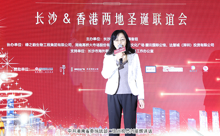 中共湖南省委统战部二级巡视员刘丽辉在讲话中表示,值此辞旧迎新之际,我们即将迎来充满希望的2022年,她代表中共湖南省委统战部向各位与会同胞致以亲切的问候和节日的祝福。2021年在我们国家的历史上是具有重要里程碑意义的一年。这一年我们迎来了中国共产党100周年的华诞,这一年我们始终在克服百年不遇的疫情,这一年香港迎来了特色民主的新纪元。她相信,有党中央的坚强领导、有内地的鼎力支持、有在座各位的共同努力,香港和长沙的明天一定会更美好。