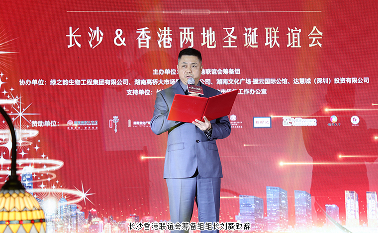 活动伊始,胡国安董事长致欢迎辞。他首先代表香港长沙联谊会向热情参与此次“心系香江·情满湘江”长沙&香港两地圣诞联谊会的家人朋友们致以热烈的欢迎和节日的问候。长期以来,广大在长香港同胞积极参与长沙社会事务,为推动长沙和香港交流合作发挥了重要作用。长沙作为湖南的省会城市,不仅仅是媒体艺术之都,也是如今的网红城市,更是广大企业家们的创业之都与幸福家园。希望所有在长沙的港籍企业家朋友能够扎根长沙,在长沙创业兴业,为长沙的经济社会发展贡献力量。最后,他预祝长沙&香港两地圣诞联谊会取得圆满成功。