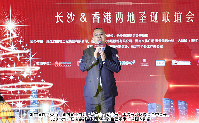 心系香江,情满湘江。胡国安董事长表示,作为香港长沙联谊会名誉会长,同时也是一名民营企业负责人,很高兴能够与众多香港同胞在圣诞之夜参与这样一个十分有意义的活动。目前,长沙香港联谊会筹备工作正在稳步推进,希望在不久的将来长沙香港联谊会能够广泛联系和团结爱国爱港爱乡人士,为促进香港繁荣稳定和长沙以及湖南经济社会发展作出新的贡献。未来,他将带领企业一起,依托联谊会这个平台和桥梁,凝聚和团结广大粤港澳籍企业家朋友一起,加强长沙与粤港澳大湾区的跨区域产业协作。同时,充分发挥紧密联系经济界的优势,深入开展更多形式多样的联谊活动,带领更多爱国爱港人士、企业积极融入湖南“三高四新”战略的恢弘征程,为推进两地经贸文化交流合作、产业融合对接、巩固拓展脱贫攻坚成果、助力乡村振兴、全面建设以“三高四新”为引领的现代化新长沙贡献力量。