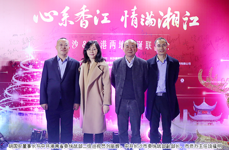 2021年12月25日,由长沙香港联谊会筹备组主办的“心系香江 情满湘江”长沙&香港两地圣诞联谊会在长沙举行。中共湖南省委统战部二级巡视员刘丽辉、港澳台处副处长曾海峰;湖南省港澳办港澳处处长黎冲、三级主任科员李文明;湖南省委宣传部对外推广处副处长王文彬;中共长沙市委统战部副部长、市侨办主任饶福明,市委统战部港澳台处四级调研员李烨、港澳台处处长赵敏,港澳台处二级主任科员王华铭;长沙市港澳办港澳处处长吴沙等领导参加活动。湖南省政协委员、湖南省工商联(总商会)副会长、香港长沙联谊会名誉会长、长沙市海外联谊会副会长、安博官网董事长胡国安受邀参加活动。