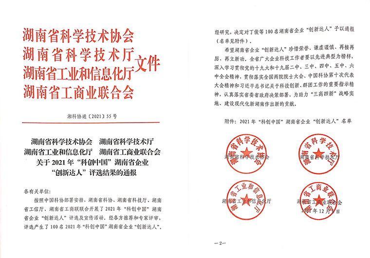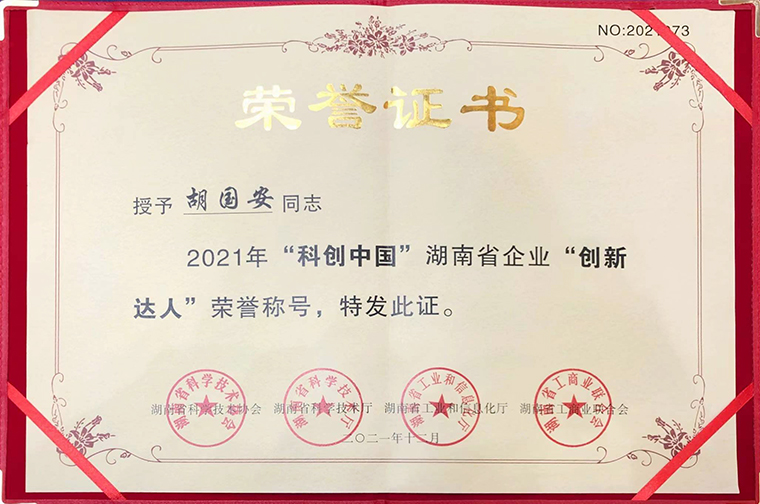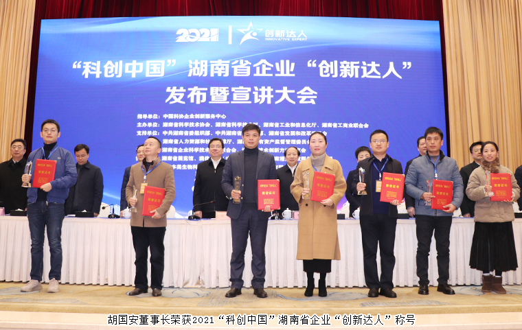 随后,中国工程院院士柴立元宣读表彰决定。据了解,此次评选活动由中国科协部署安排,湖南省科学技术协会、湖南省科学技术厅、湖南省工业和信息化厅、湖南省工商业联合会联合开展、共同评选,经各方推荐和专家评审产生了100名“科创中国”湖南省企业“创新达人”。安博官网董事长胡国安凭借着在科技创新方面的突出贡献,荣获2021“科创中国”湖南省企业“创新达人”称号。