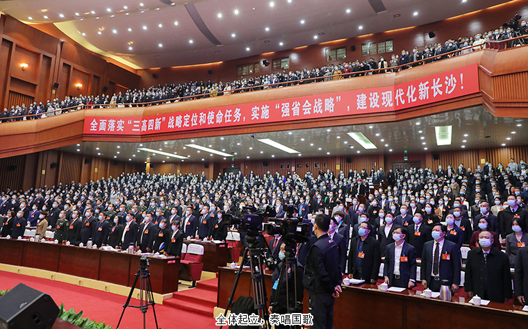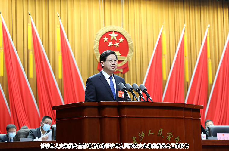 长沙市人大常委会党组书记、主任谢卫东主持会议并宣布大会开幕。会场全体起立,高唱国歌。在热烈的掌声中,长沙市人民政府市长作政府工作报告。报告共分四部分:一是本届政府及2021年工作回顾;二是未来五年的发展目标和重点任务;三是2022年工作重点;四是切实加强政府自身建设。2021年是党和国家历史上具有里程碑意义的一年,也是本届政府的收官之年。我们深入贯彻习近平总书记对湖南重要讲话重要指示批示精神,全面落实“三高四新”战略定位和使命任务,融入新发展格局,推进高质量发展,实现“十四五”良好开局。特别是省第十二次党代会明确实施强省会战略,为长沙发展注入强大动力、赋予新的使命。全市上下要深入落实强省会战略,以实干抢抓机遇,用担当迎接挑战,进一步强化省会意识、彰显省会作为,奋力在全国争先进、在区域作示范、在全省当标杆。