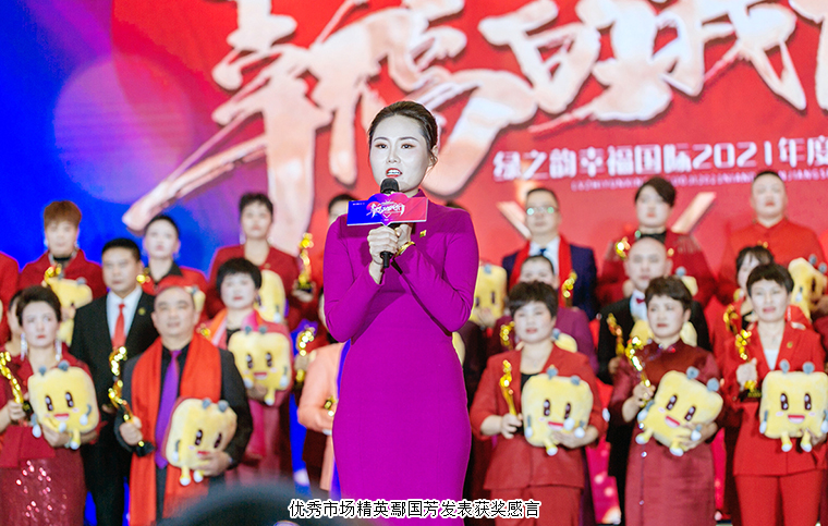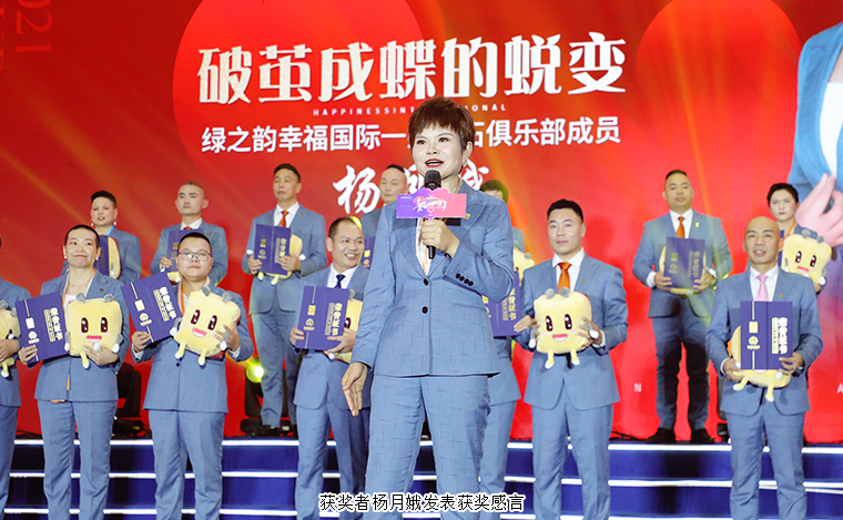 他们,从不缺席每一次成长,从不放弃每一份希望。他们从追逐光,到成为光,用破茧成蝶的蜕变,为奋斗注入新的内涵。绿之韵国际商学院执行院长黎芋成、安博官网市场运营中心区域业务总监谭红为“绿之韵幸福国际2021年度最具成长奖”获得者颁奖,并致以祝贺。优秀市场精英鄢国芳发表获奖感言。