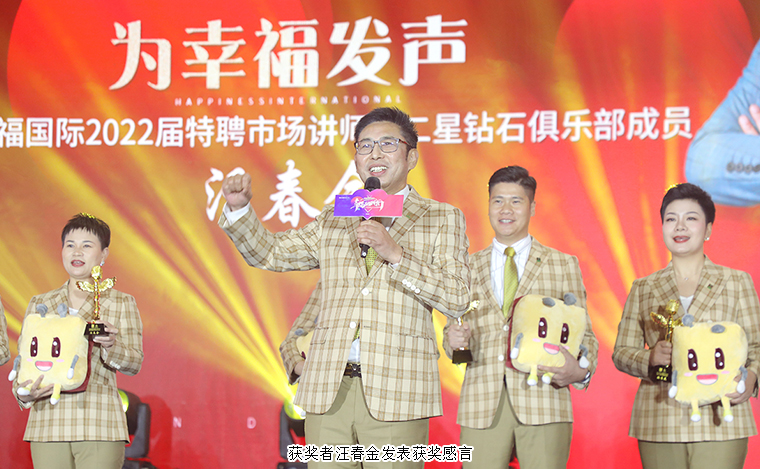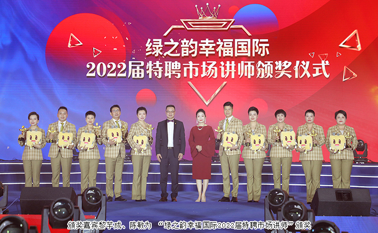 他们,肩负传道、授业、解惑的讲师使命,向外界推开绿之韵幸福国际的文化窗口,为绿之韵的事业版图立下了不朽的功勋。因为他们是师者,德之高,能之强,是光芒,他们是行者,志之坚,行之正,是榜样。绿之韵国际商学院执行院长黎芋成、绿之韵国际商学院常务副院长陈敏为“绿之韵幸福国际2022届特聘市场讲师”颁奖,并致以祝贺。获奖代表汪春金发表获奖感言。