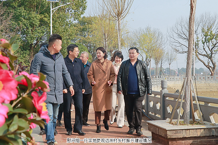 随后,慰问组一行实地调研了边洲村乡村振兴建设情况,这里正发生着翻天覆地的变化,集现代农业、休闲旅游、田园居住于一体的“田园综合体”建设项目已初见雏形。宽阔平整的道路,错落有致的民居,满目皆绿,处处是景。