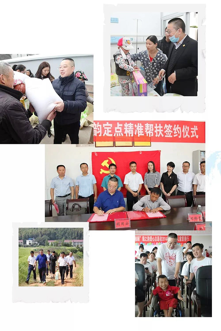 湖南省安化县位于资水中游、湘中偏北,总面积4950平方公里,山地面积达82%,是国家扶贫开发工作重点县和武陵山片区区域发展与扶贫攻坚试点县,也是生我养我的故乡。2015年4月,湖南省委统战部、湖南省质监局、湖南省城市学院三家省直单位分别入住黄石村、旸二村和陈王社区村开展扶贫开发工作。该片区在水、电、路、房、环境整治等基础设施项目建设上有着迫切的需求。2015年7月,我赴安化江南镇黄石片区进行扶贫工作调研时,捐资30万元帮扶安化县江南镇黄石片区村组建设水、电、道路和学校等基础设施,解决当地村民文明、致富和开放的迫切需求,并呼吁更多的企业家、爱心人士加入到“回报桑梓、结对扶贫”的工作中来。2018年4月,我再次捐资60万元支援安化县胡家村基础设施建设;2018年5月,捐资50万元帮助安化县江南镇乡亲们修路建桥;2018年7月,捐资35万元为安化县驿头铺村乡亲们修建“光彩同心·绿之韵村民活动广场”;2019年1月,捐资帮扶安化县烟溪镇双龙村村民委员会成立了“关心下一代基金”。