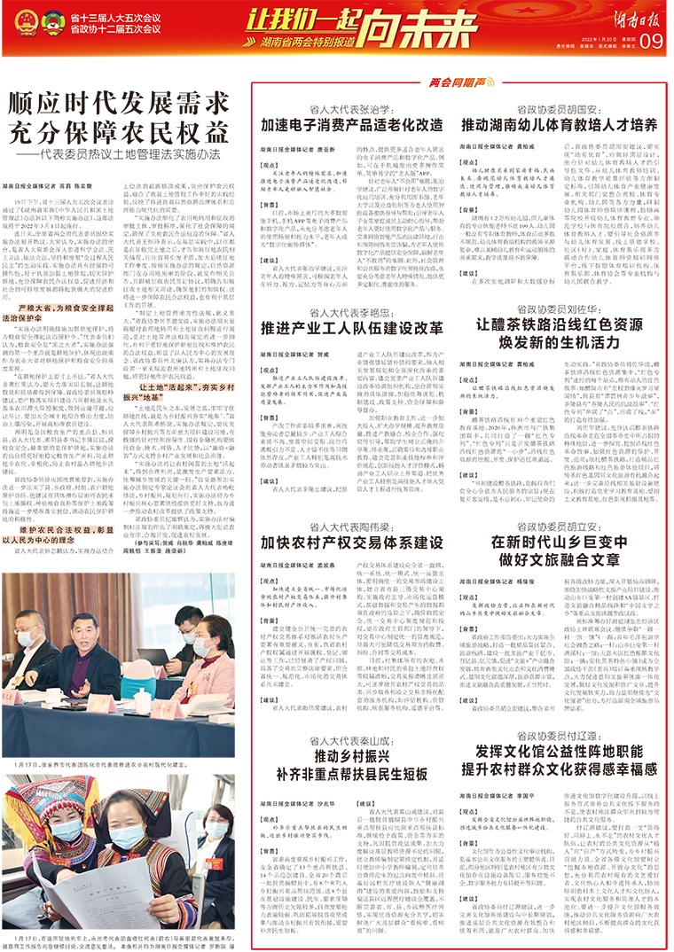 胡国安委员同省十二届政协委员一起集体列席了湖南省第十三届人民代表大会第五次会议,听取并讨论了《省政府工作报告》,并书面听取了湖南省2021年国民经济和社会发展计划执行情况与2022年国民经济和社会发展计划草案的报告、湖南省2021年预算执行情况与2022年预算草案的报告。胡国安委员表示,今年的《政府工作报告》内容精彩详实,上接“天线”、下连“地气”。其中,“稳”“进”“高”“新”四个关键字令他印象尤为深刻。坚持“稳”字当头,保持“进”的态势,把握“高”的要求,实现“新”的作为,描绘出了湖南未来发展的美好蓝图,是一份政治站位高、工作举措实、为民情怀浓的好报告。