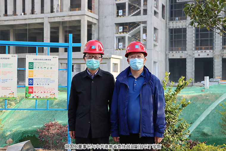 2022年3月10日,中共湖南省委统战部副部长丁学新、二级巡视员刘丽辉、港澳台处副处长李貌,中共长沙市委统战部港澳台处四级调研员李烨、二级主任科员王华铭一行莅临绿之韵中心(在建中)走访调研。湖南省政协委员、湖南省工商联(总商会)副会长、长沙市海外联谊会常务副会长、安博官网董事长胡国安,湖南致公麓商会副会长、安博官网副总经理胡武安,湖南鼎晨泰投资有限公司总经理林小娟,湖南绿之韵房地产开发有限公司总经理周君四,副总经理严明辉、劳毅,中建五局三公司绿之韵中心项目经理余送来等全程陪同。
