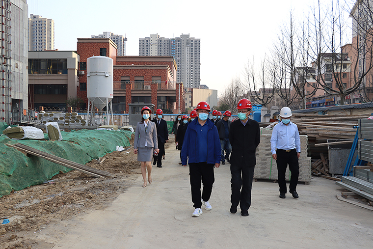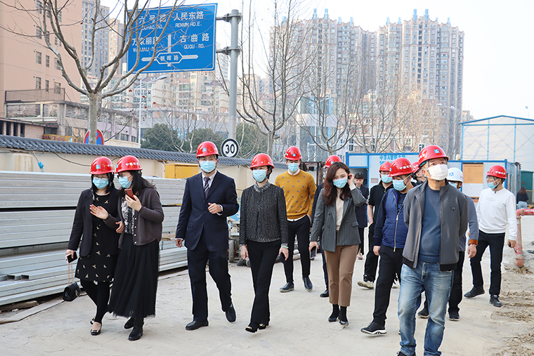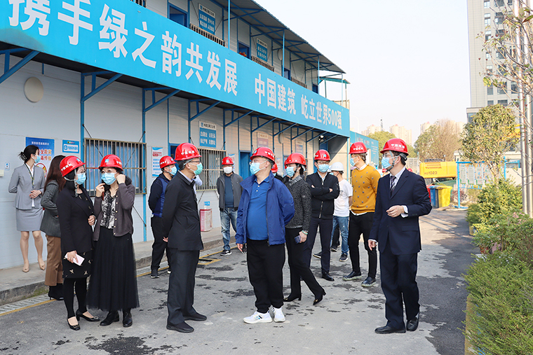 调研组一行在项目工作人员的引导下,前往工地现场查看了整个项目的施工进度及作业环境,了解绿之韵中心项目建设安全生产、绿色施工情况,并前往项目工地食堂了解卫生防疫、食品安全等情况。