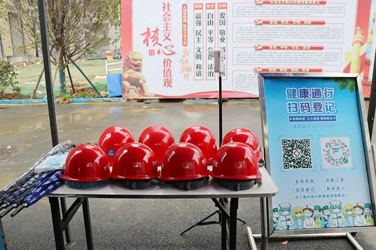 调研组一行在项目工作人员的引导下,前往工地现场查看了整个项目的施工进度及作业环境,了解绿之韵中心项目建设安全生产、绿色施工情况,并前往项目工地食堂了解卫生防疫、食品安全等情况。