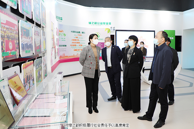 在绿之韵国际会议中心展厅,劳嘉总裁就企业基本情况、生产经营、市场布局、依法纳税、非公党建和公益慈善等方面的工作情况向调研组一行做了详细汇报。多年来,绿之韵不断加大科研投入,不断深化“产学研”合作,先后与多所科研机构、高等院校达成战略合作,成立了产品专家委员会,不断提升产品核心竞争力。在企业发展的同时,公司积极承担社会责任,踊跃参与和倾情捐助了100多项公益事业,累计捐赠款物7000多万元。