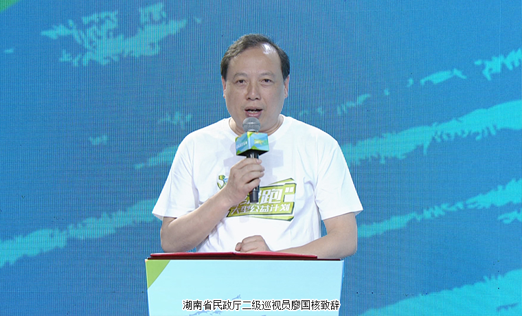 启动仪式上,湖南省民政厅二级巡视员廖国核致辞。他表示,绿跑不仅是一次全民健身活动,更是一次全民践行大爱的活动,我们跑出的每一步,都是在表达对社会责任的承担,对公益事业的投入,是数万名爱心志愿者的5.20公里铺出一条汇爱之路。感谢安博官网一直以来对社会公益事业的关心、关注和支持,展现出了优秀民营企业的责任和担当。湖南省慈善总会承担着弘扬社会主旋律,传递社会正能量的使命和责任。这次联合绿之韵公益基金会共同举办本次活动,目的就是向全社会发出公益向善的呼声,共同为乡村振兴助力,为建设富饶美丽幸福新农村贡献力量。