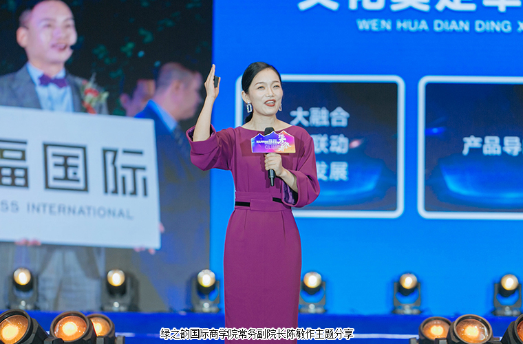 大会伊始,震人心脾的《幸福攀登者》视频拉开了本次大会的序幕。绿之韵国际商学院常务副院长陈敏带来《三生万物 勇攀高峰》主题分享。向现场的每一位绿之韵事业伙伴们诠释了绿之韵幸福国际三年来坚持无畏、拼搏、向上的攀登决心和奋斗精神。
