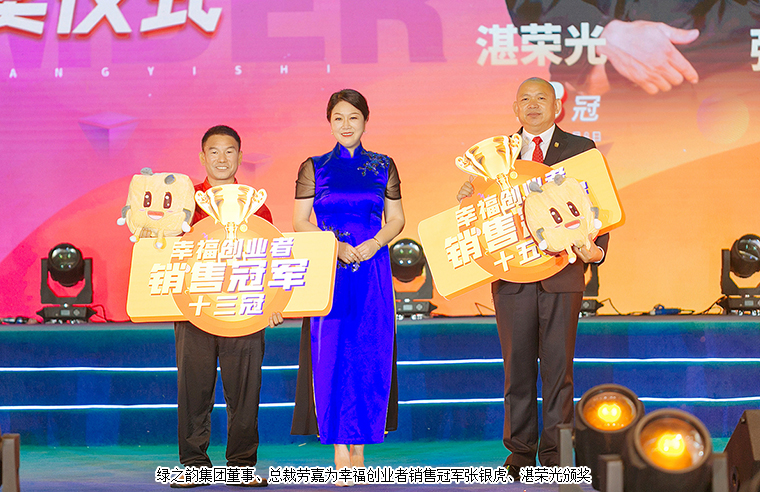 每个人心中都有一个关于攀登的理由,而他们的理由,是不想再庸碌的活着。在现场千余名绿之韵幸福国际家人们的见证下,大会举行了盛大的颁奖仪式。百余名“幸福创业者”身着盛装,在星光闪烁中走上舞台,共享荣耀时刻。安博官网董事、总裁劳嘉为幸福创业者销售冠军张银虎、湛荣光颁奖。幸福代言人张银虎、湛荣光分享获奖感言。