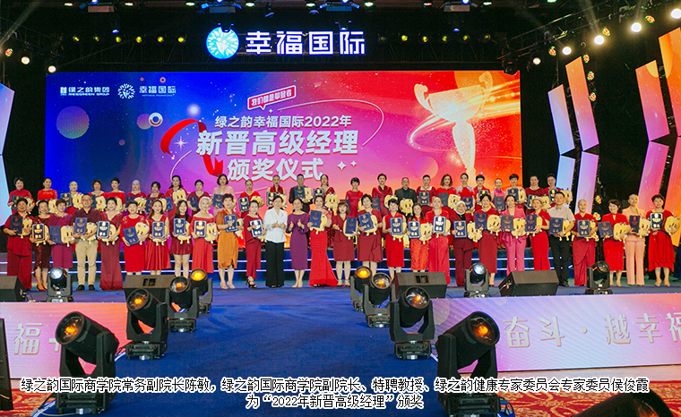 为幸福攀登,不是为了超越他人,而是为了成为更好的自己。一马平川到不了梦想的山顶,向上的路,注定充满挑战和艰辛,从出发的那一刻起,他们的眼里就只有目标,前进的每一步,都留下他们不屈奋斗的背影。为了幸福身边每一个人,幸福身边每一个家庭,为了健康中国的美好愿景,他们已经做好准备,去征服更高的山峰。绿之韵国际商学院常务副院长陈敏,绿之韵国际商学院副院长、特聘教授、绿之韵健康专家委员会专家委员侯俊霞为“2022年新晋高级经理”颁奖。幸福代言人冯倩倪分享获奖感言。