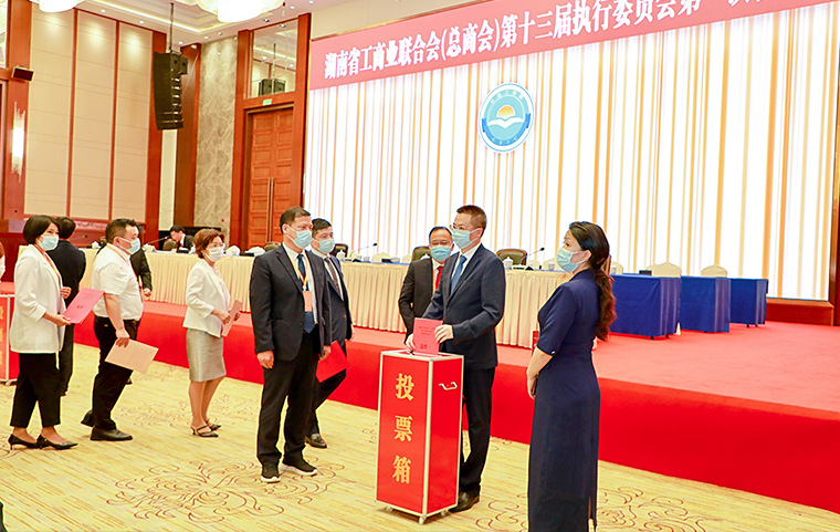 30日下午举行的闭幕式上,大会审议通过了湖南省工商联(总商会)第十三次代表大会关于第十二届执委会报告的决议;通过了湖南省工商联(总商会)会费管理办法;通过了湖南省工商联(总商会)第十二届离任副主席、副会长、常执委的致敬信;宣读了民营企业助力县域经济高质量发展倡议书;大会选举产生了湖南省工商联(总商会)新一届执行委员会和领导班子,张健当选为湖南省工商业联合会(总商会)执行委员会主席(会长),刘事青当选为常务副主席(常务副会长),杨广林、石红(女)、漆平波、彭天忠当选为副主席(副会长),陈夕林当选为秘书长。劳嘉总裁成功当选湖南省工商联(总商会)第十三届常务委员会委员。