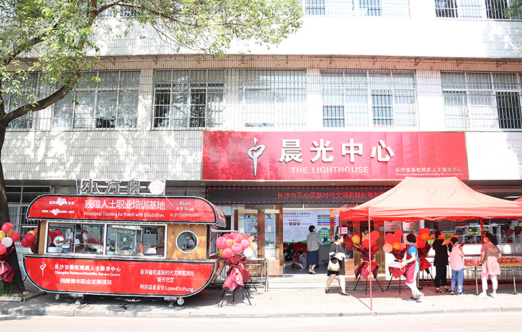据了解,“小方舟”项目由长沙市天心区新开铺街道新天社区新时代文明实践站与长沙市彩虹残疾人士服务中心合作建立,目标是为残障人士提供职业技能培训和实践实习的机会,促进残疾人增收和自强自立,促进社区包容与和谐发展。活动现场,与会领导共同为“小方舟”开业剪彩,为“小方舟”正式落地送上诚挚的祝福。随后,到访的志愿者、爱心企业以及社区居民一起体验了青年人的服务,品尝美食,并与残障青年开展了蒙眼敲鼓、独臂串珠等游戏。