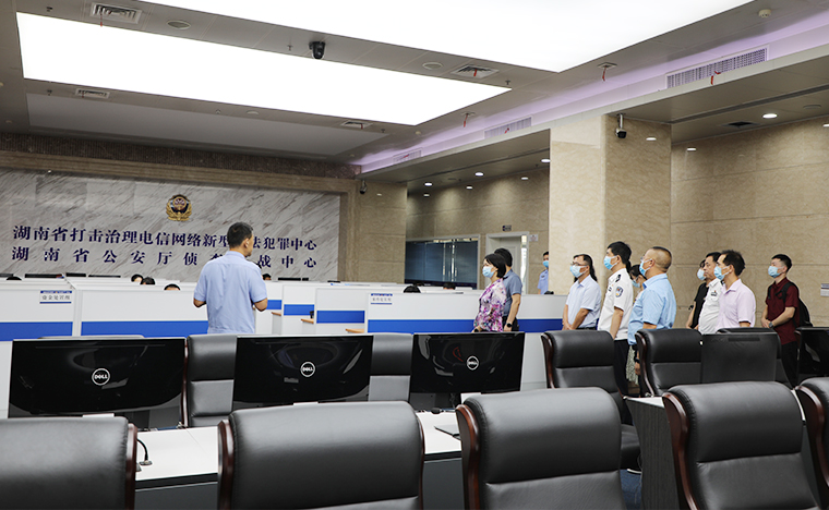 调研组一行首先参观考察了湖南省反电诈中心,通过实地调研和听取汇报等方式,详细了解了近年来湖南省公安厅在打击治理电信网络诈骗犯罪领域的工作情况,并就“电信网络诈骗综合治理”召开了专题调研座谈会。