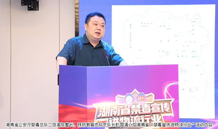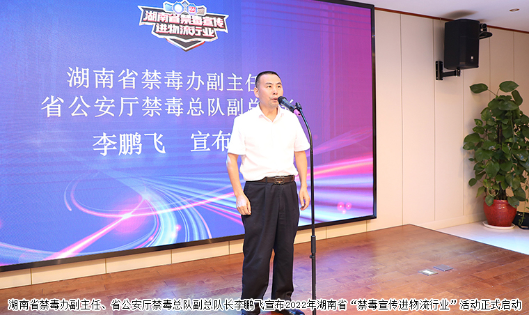 启动仪式由湖南省物流与采购联合会副会长兼秘书长申建华主持。会上,湖南省物流与采购联合会会长尹国杰为活动致辞。湖南省禁毒协会会长董瑛致辞。她表示,随着禁毒严打的不断深入和新冠疫情常态化,线上交易线下交货、人货分离、“互联网+物流寄递”已经成为新时期毒品贩卖的主要手段,物流行业成为禁毒工作的重要战场。因此,为全面筑牢物流行业禁毒防护墙,从源头上加强物流企业涉毒防范,加强物流行业禁毒宣传教育意义重大。随后,湖南省公安厅禁毒总队二级高级警长、预防教育支队支队长彭国清介绍湖南省“禁毒宣传进物流行业”活动内容。湖南省禁毒办副主任、省公安厅禁毒总队副总队长李鹏飞宣布2022年湖南省“禁毒宣传进物流行业”活动正式启动。