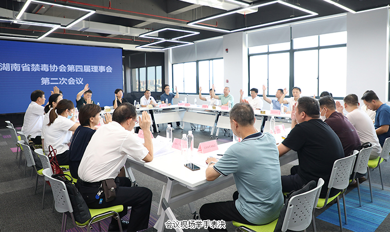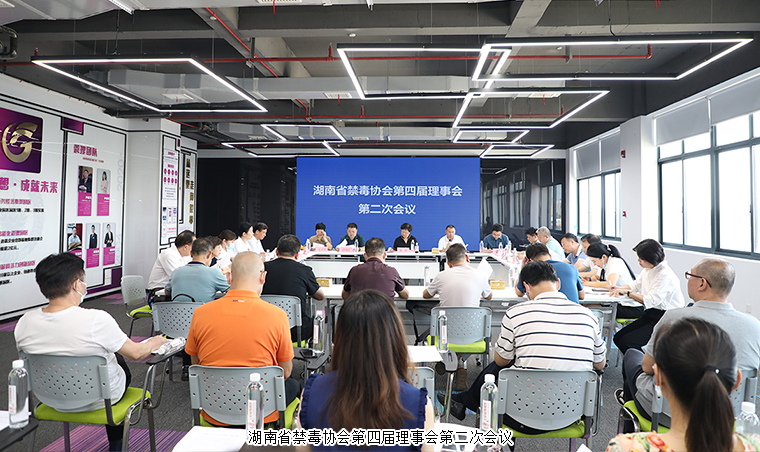 活动第二阶段,召开湖南省禁毒协会第四届理事会第二次会议。会议由湖南省禁毒办副主任、省公安厅禁毒总队副总队长李鹏飞主持。会议审议并通过了《关于省禁毒协会秘书长改选的说明》《关于部分会员单位调整的说明》《关于禁毒协会工作人员发放绩效工资的说明》。随后,各市州禁毒协会作经验交流发言,详细介绍本地禁毒工作先进典型经验。会议最后,湖南省禁毒协会会长董瑛作总结发言,并对协会下半年工作进行部署和安排。