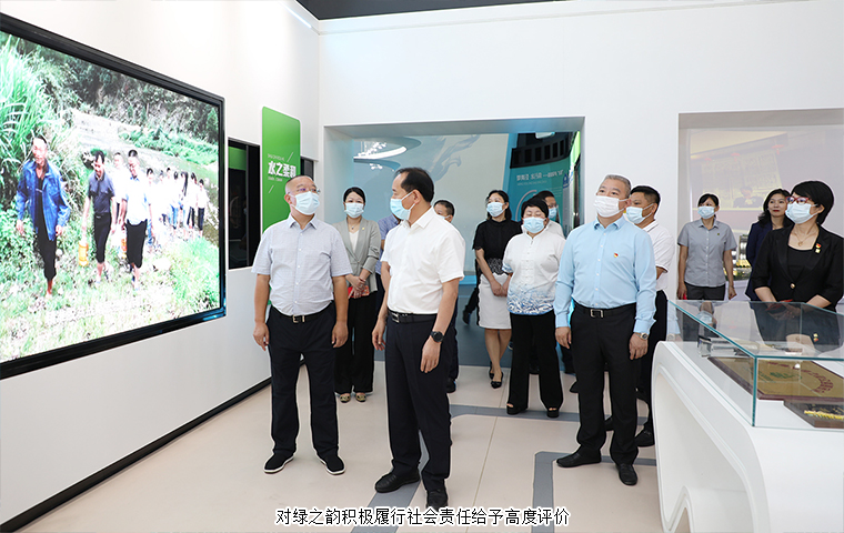 调研组一行参观了绿之韵国际会议中心展厅。胡国安董事长就企业发展历程、生产经营、非公党建、公益慈善等方面的工作向调研组一行作了详细介绍。安博官网自2003年创立以来,始终坚持诚信守法经营,自觉依法决策、依法生产、依法经营、依法管理,在诚信守法中健康发展,树立了良好的企业信誉。在振兴实业的同时,绿之韵积极承担企业公民责任,踊跃参与了100多项社会公益项目,涉及赈灾济困、兴教助学、孤残救助、医疗卫生、修路饮水、养老医疗等多个领域,累计捐款捐物达7600多万元。绿之韵坚持“以产品为导向”的发展理念、“水的精神和家文化”的企业特质以及产业富民、回馈社会的良好企业形象让调研组一行印象深刻。