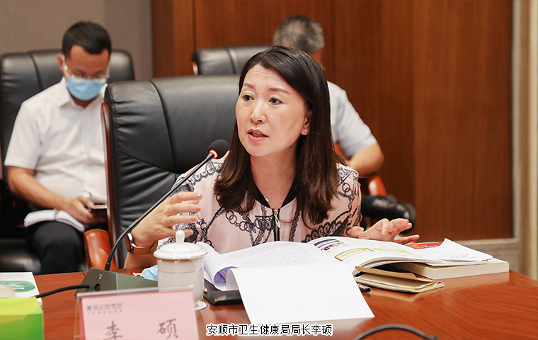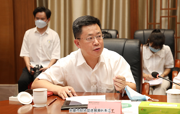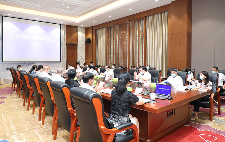 调研组一行对绿之韵的企业实力、产业发展、积极履行社会责任和非公党建工作给予了高度肯定。随后,安顺市工业和信息化局、市农业农村局、市卫生健康局、市投资促进局等相关负责人在会上就安顺市的发展潜力、地缘优势、优质资源、政策支持、营商环境进行全方位推荐,就与绿之韵意向合作事项进行深入交流。