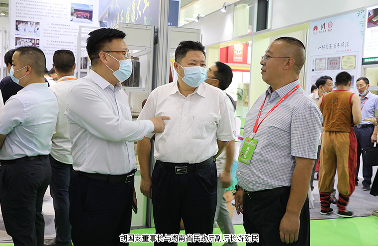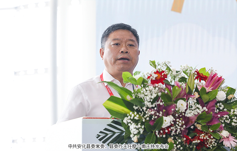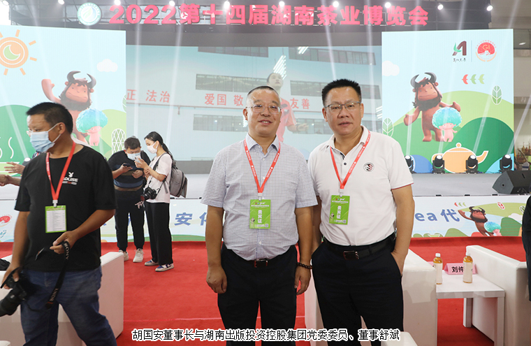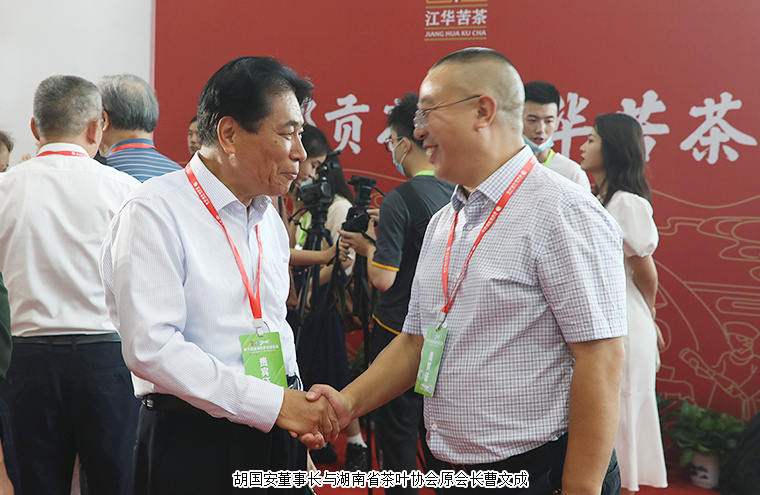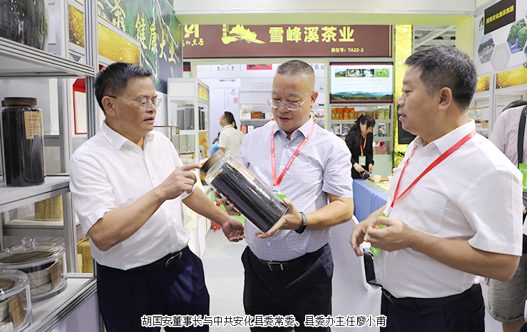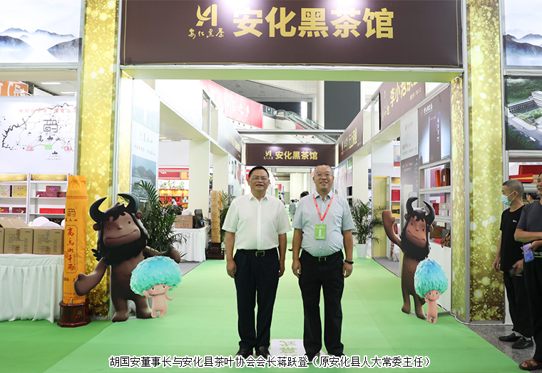 为深度契合新发展阶段、新发展理念、新发展格局,进一步激发茶叶消费潜力,促进产销对接,9月3日,安化黑茶高质量发展新闻发布会在湖南国际会展中心举行。中国茶叶流通协会会长王庆、中国茶叶流通协会副会长姚静波;湖南省人大常委会原副主任蔡力峰,湖南省人大常委会原副主任叶红专,湖南省民政厅副厅长游劲民,湖南中医药大学副校长刘鸿翔;湖南省茶叶协会原会长曹文成,湖南省茶叶协会会长周重旺,益阳市人民政府副市长何军田;中共安化县委书记石录明,中共安化县委常委、县委办主任廖小甫,县委常委、副县长杨华锋,副县长阳锋,安化县政协副主席肖伟群,安化县人大常委会原主任、县茶业协会会长蒋跃登等领导出席新闻发布会。湖南省政协委员、湖南省慈善总会副会长、湖南长沙市光彩事业基金会理事长、安化县经济促进会长沙分会理事长、长沙市安化商会会长胡国安受邀参加会议。