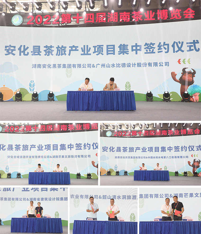 本次新闻发布会上还举行了安化黑茶公共文化IP体系、广告语首发仪式和安化县茶旅产业项目集中签约仪式。湖南芒果文旅投资有限公司、中国水利水电第八工程局有限公司等8家企业分别签订了投资协议和采购协议,为安化茶旅文康产业的融合发展掀起了新一轮浪潮。来自故宫博物院宫廷历史部的王宜若,以安化“千两贡茶”文物为主线,围绕清代贡茶制度,为活动现场的数百位观众阐述了安化贡茶在清宫的进贡制度及使用情况,展示安化贡茶在清宫生活中占据的重要地位。随后,大会现场对我省茶产业高质量发展进程中做出卓越贡献的“湖南杰出茶人”进行了表彰。