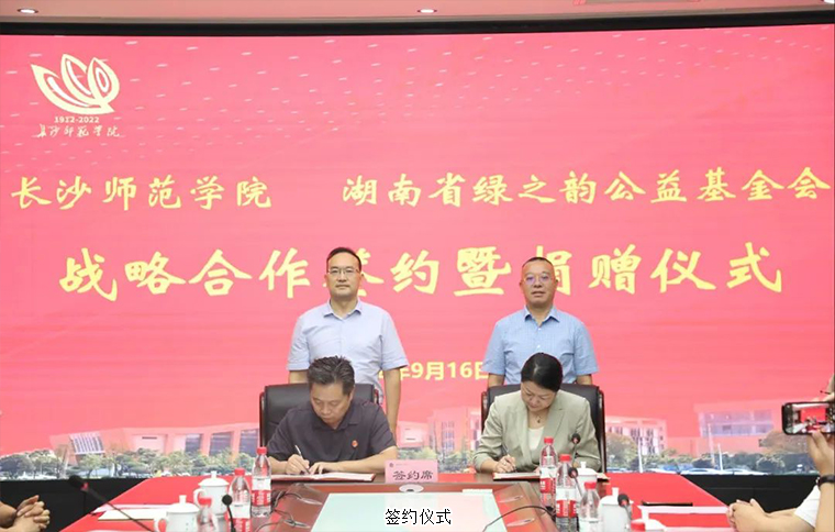 为进一步推进幼体融合、助力学前教育高质量发展,2022年9月16日,长沙师范学院与湖南省绿之韵公益基金会战略合作签约暨捐赠仪式在长沙师范学院举行。湖南省政协委员胡国安通过绿之韵公益基金会捐资40万元与长沙师范学院共建湖南省幼儿体质健康促进研究院。长沙师范学院党委副书记、校长曹晓鲜,党委委员、副校长黄快林,党委委员、副校长徐庆军,奥运冠军、体育运动委员会专职副主任龚智超,体育科学学院院长陈捷,创新创业学院院长张德启,教务处副处长陈亮,校友会副秘书长李月;湖南省政协委员、长沙师范学院客座教授、安博官网董事长胡国安,湖南省女企业家协会常务副会长、安博官网董事总裁、湖南省绿之韵公益基金会理事长劳嘉,傲迪玛汽车董事局主席、湖南省绿之韵公益基金会副会长胡武安,湖南马良数码科技股份有限公司董事长周益安,湖南湘体爱动教育科技有限公司董事长张亚球,湖南马良数码科技股份有限公司总经理李祥龙参加活动。