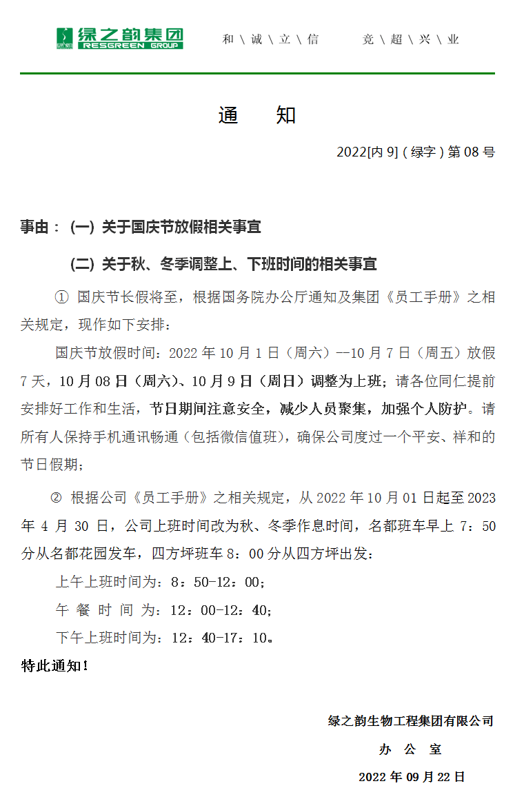 通 知 丨关于“中秋国庆”节放假安排和秋冬季作息时间调整的相关事宜