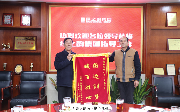 2022年11月23日,长沙市场监督管理局驻浏阳市北盛镇边洲村第一书记罗亚军、边洲村原村党总支书记聂力武等一行莅临安博官网,并送来爱心锦旗,表达对绿之韵支持北盛镇边洲村乡村振兴建设工作的感谢之情。安博官网董事、总裁劳嘉,工会主席兼办公室行政总监冯红,党委副书记许达仲,浏阳市政协委员、绿之韵公益基金会秘书长蒋文等参加活动。