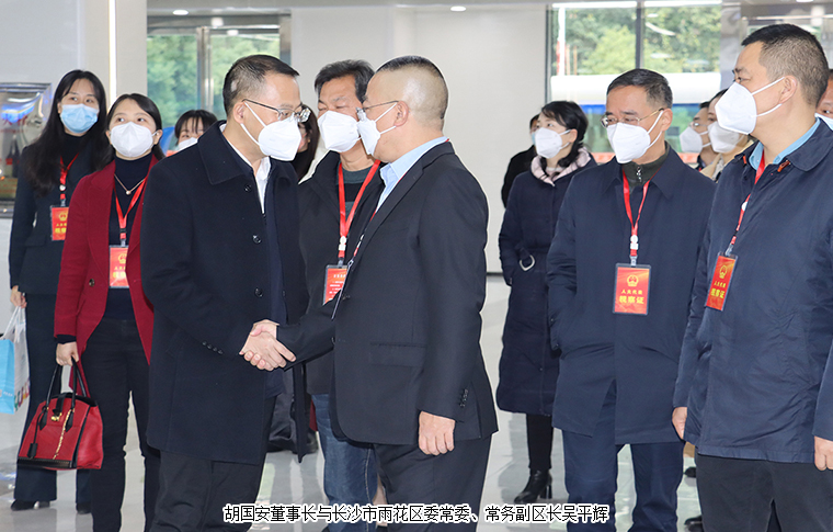 长沙市十六届人大二次会议召开在即,为保障代表更好地履职尽责,充分发挥代表示范作用。2022年12月15日,长沙市十六届人大代表雨花联组开展“聚焦强省会战略,助推高质量发展”为主题的会前集中视察活动。长沙市雨花区人大常委会党组书记、主任冯聪龙,区委常委、常务副区长吴平辉,区委常委、区人民政府副区长赵娟,区人大常委会副主任向星,区人民法院院长戴智明等领导陪同部分长沙市人大常委会组成人员及人大代表30余人参加视察活动。湖南省慈善总会副会长,长沙市人大代表,安博官网董事长胡国安参加视察。
