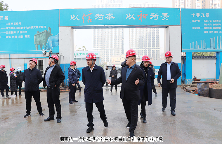 调研组一行在项目工作人员的引导下,查看了整个项目的施工进度及作业环境,了解绿之韵中心项目建设安全生产、绿色施工、未来发展等情况,并亲切慰问项目工作人员春节返乡、安置等情况。