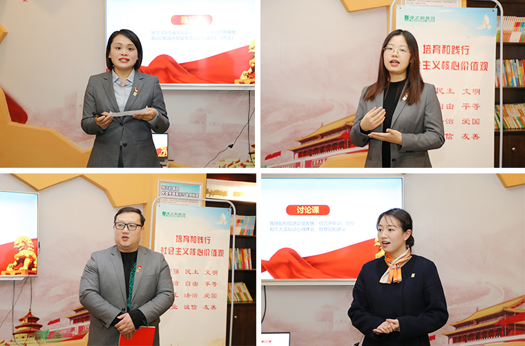 会议最后,安博官网党委书记刘云讲话。她首先对获得“学习强国达人”称号的优秀党员表示衷心的祝贺,希望获奖党员新的一年继续努力,再创佳绩。她表示,今天党员们通过图文并茂的方式进行了党课学习,并结合自身工作岗位作了分享,这样的形式很好。希望党员们能再接再厉,将每月的政治学习的形式和内容变得更加丰富和生动,做到在学习中成长,在成长中学习。随后,刘云书记向在座党员传达了上周园区召开的党务工作会议精神,2023年是全面贯彻落实党的二十大精神的开局之年,作为一名党员要将党的二十大精神学深悟透学实。今年我们的党建工作要注重思想引领,紧抓理论学习,促进党的二十大精神在企业走深走实;要强化管理意识,加强党性锤炼,深化队伍建设,持续发挥战斗堡垒和先锋模范作用;要强化服务意识,激发组织活力,坚持以实为本,推动党建与企业发展双赢双促;强化争先创优意识,坚持先进引领,走在前干在前,以高质量党建为集团二十周年增光添彩。